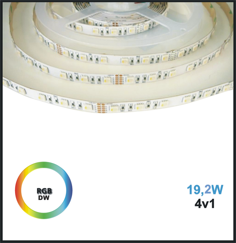 * RGB+DW 24V LED pásek je novinkou spojení RGB a jedné barvy na jednom pásku.