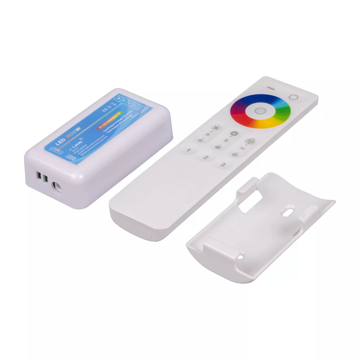 RGBW LED ovladač 3kanálový RF (radiofrekvenční) pro dálkové ovládání intensity jasu RGBW LED pásků, modulů a dalších 12-24V RGBW LED produktů. Přijímač může být ukrytý (za zdí, sádrokartónem či ve skříni), není nutná přímá viditelnost přijímače pro ovladač. LED ovladač Largo umožňuje ovládat až 3 zóny samostatně. Pokud chcete ovládat více zón, je nutné zakoupit další sadu ovladače Largo, u tohoto modelu se přijímače samostatně neprodávají.