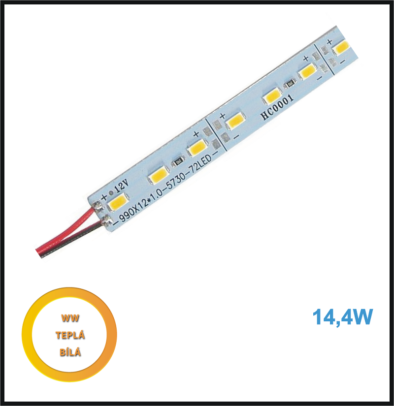 LED pásek 12V, 14,4W, hliníkový, teplá bílá