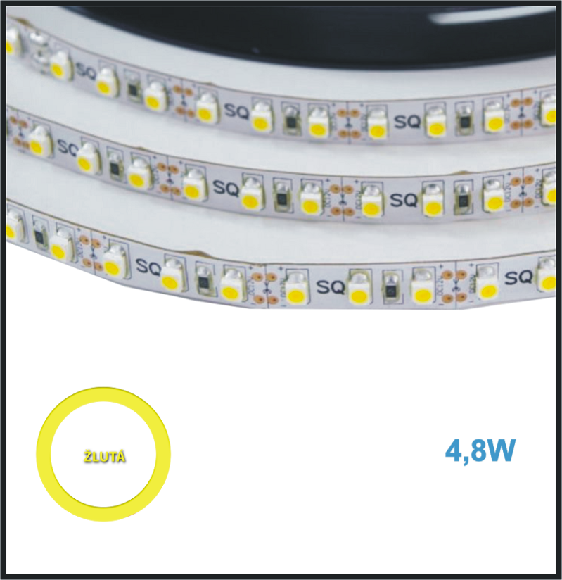 LED PÁSEK 12V, 4,8W, 60LED/m ŽLUTÝ - INTERIÉR