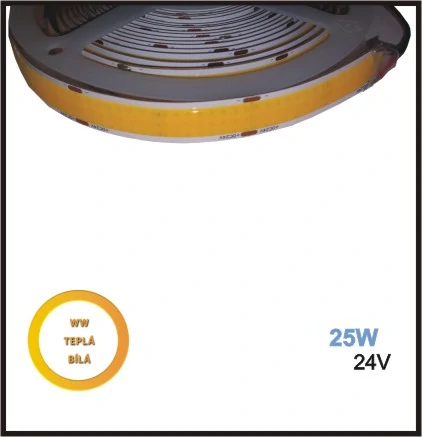 LED PÁSEK 24V, 25W, COB, TEPLÁ BÍLÁ